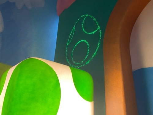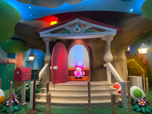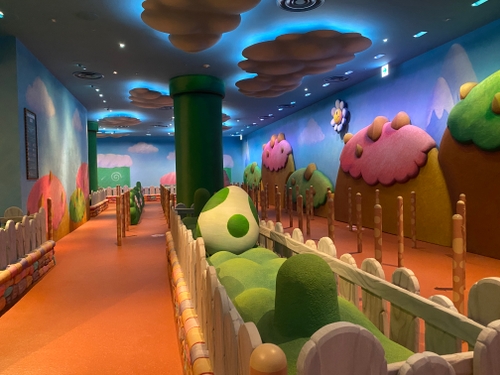 Queue area is designed to warp you into a Yoshi’s island aesthetic